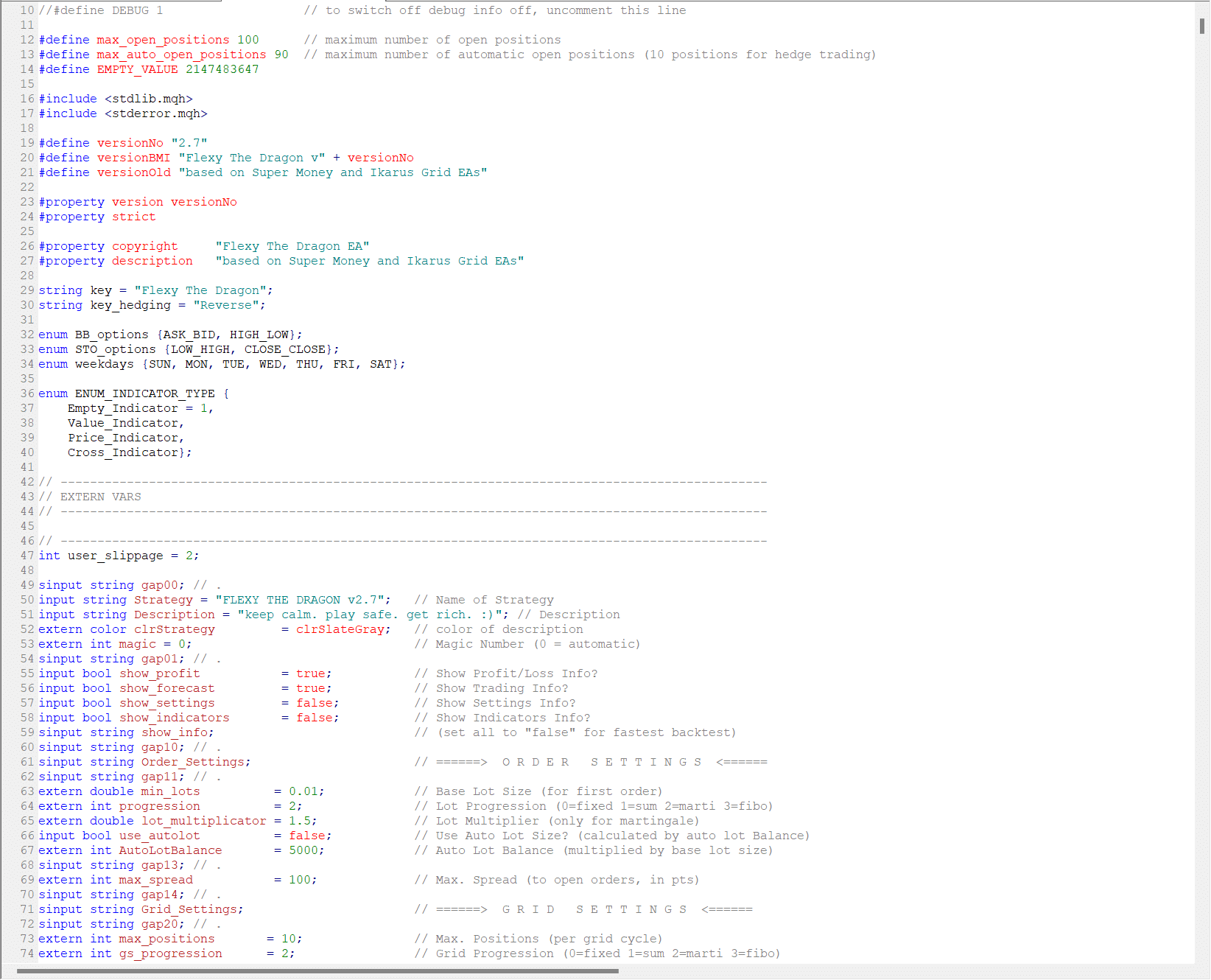 Flexy The Dragon EA V2.7 MT4 NODLL Source Code