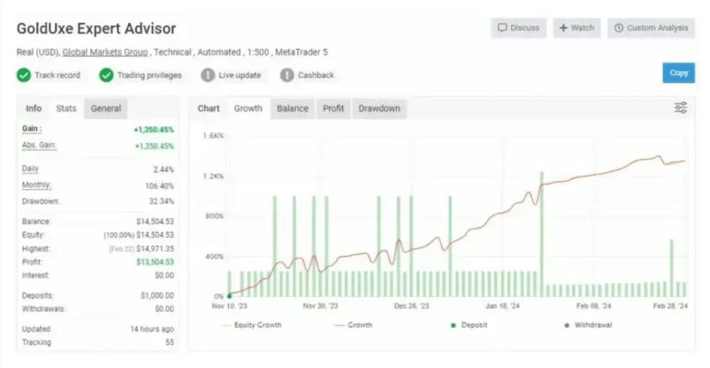 - GoldUxe EA is a highly effective and stable Expert Advisor (EA) designed for trading gold, with a focus on intraday trading and high win rates.