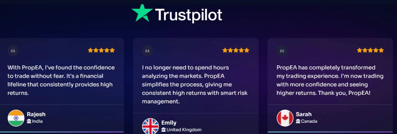 - Strategic Hedging Mastery: PropEA showcases a meticulously crafted hedging strategy, expertly navigating proprietary trading challenges while simultaneously recuperating associated costs. This unique feature not only triumphs over trading challenges but also ensures cost recovery, providing traders with a financial cushion for subsequent attempts at no additional expense.