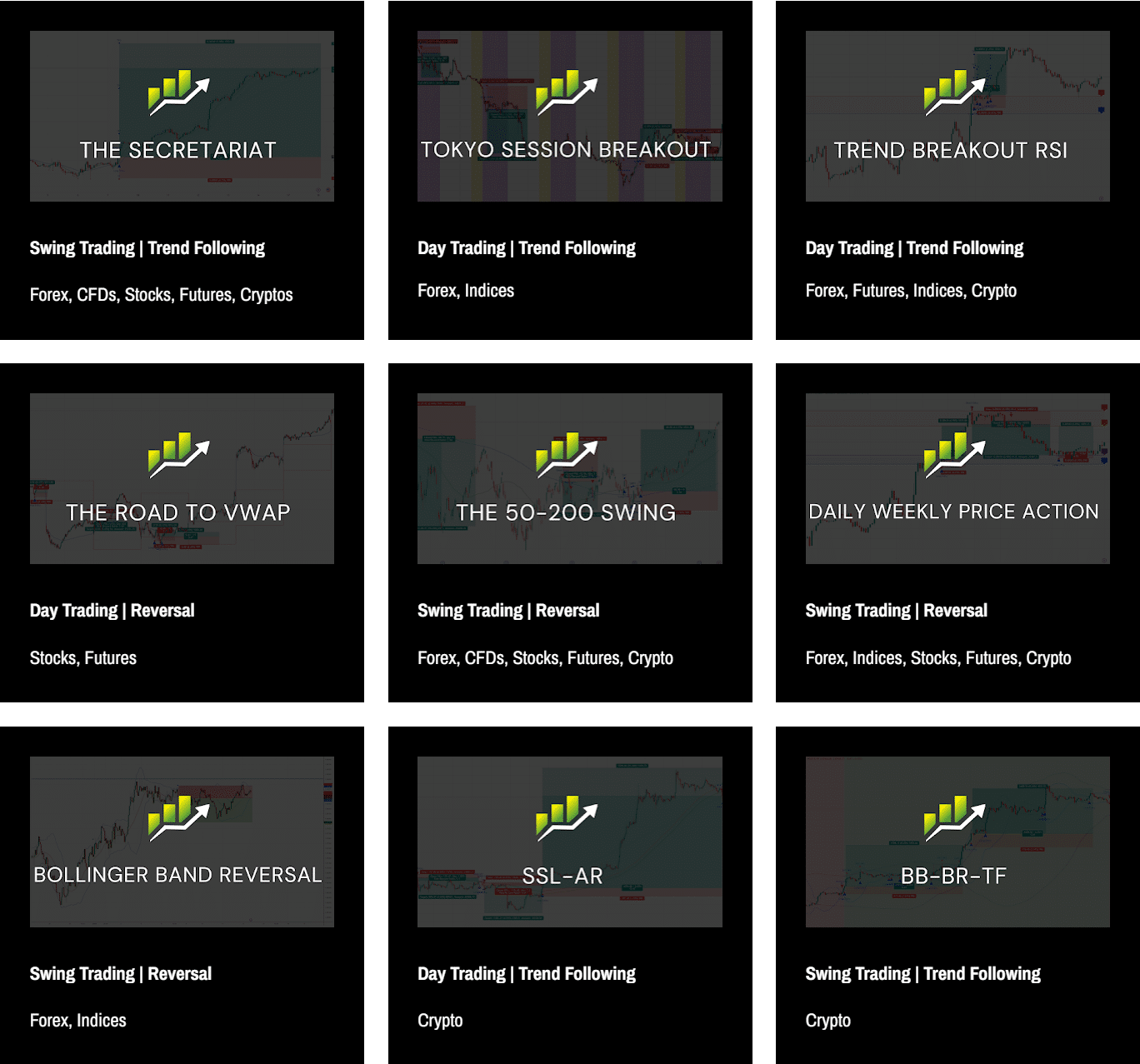 At first, you’ll learn the strategy rules so you can build your confidence. Then you can pick which strategy you wanna trade & build a portfolio that will last your entire trading career.
