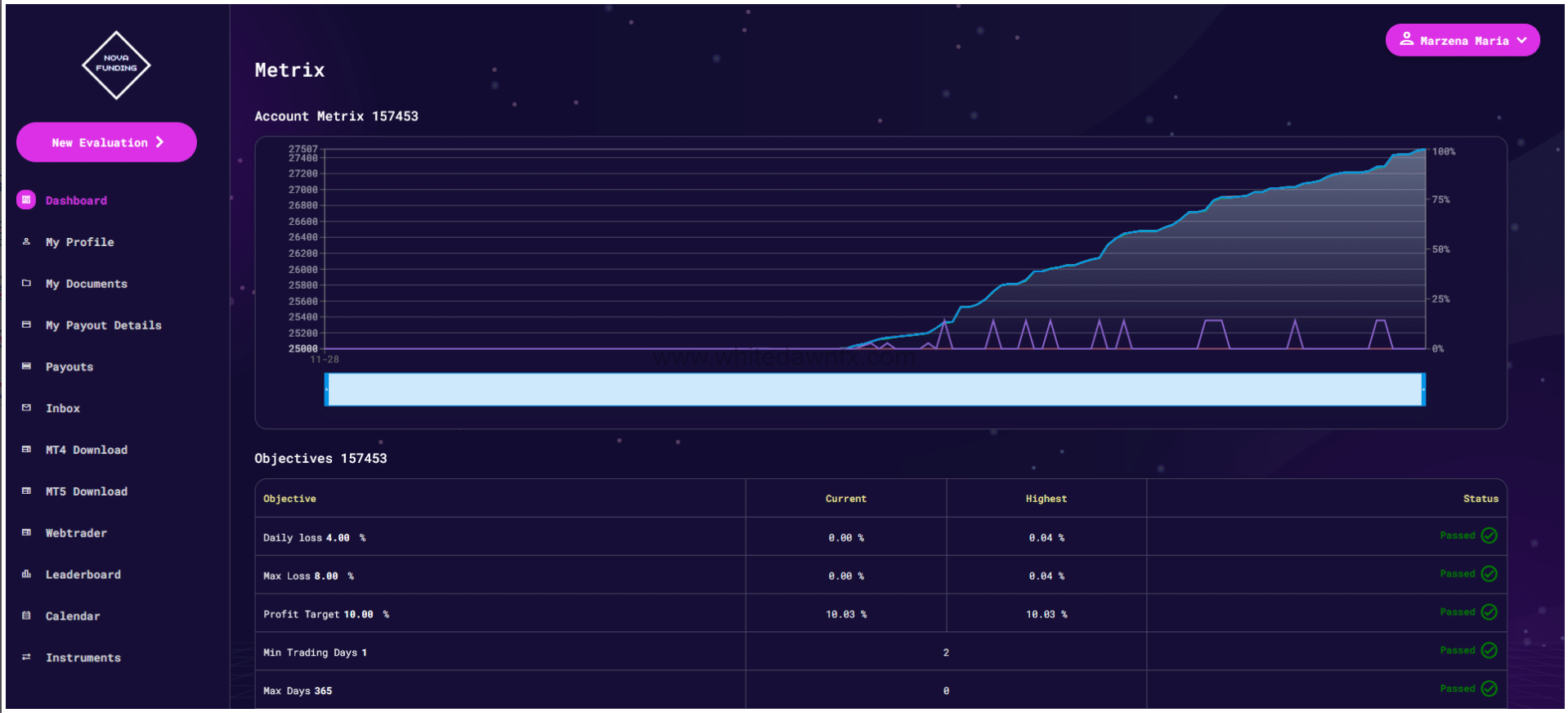 - Max Drawdown – the maximum drawdown on the account is set at 4%